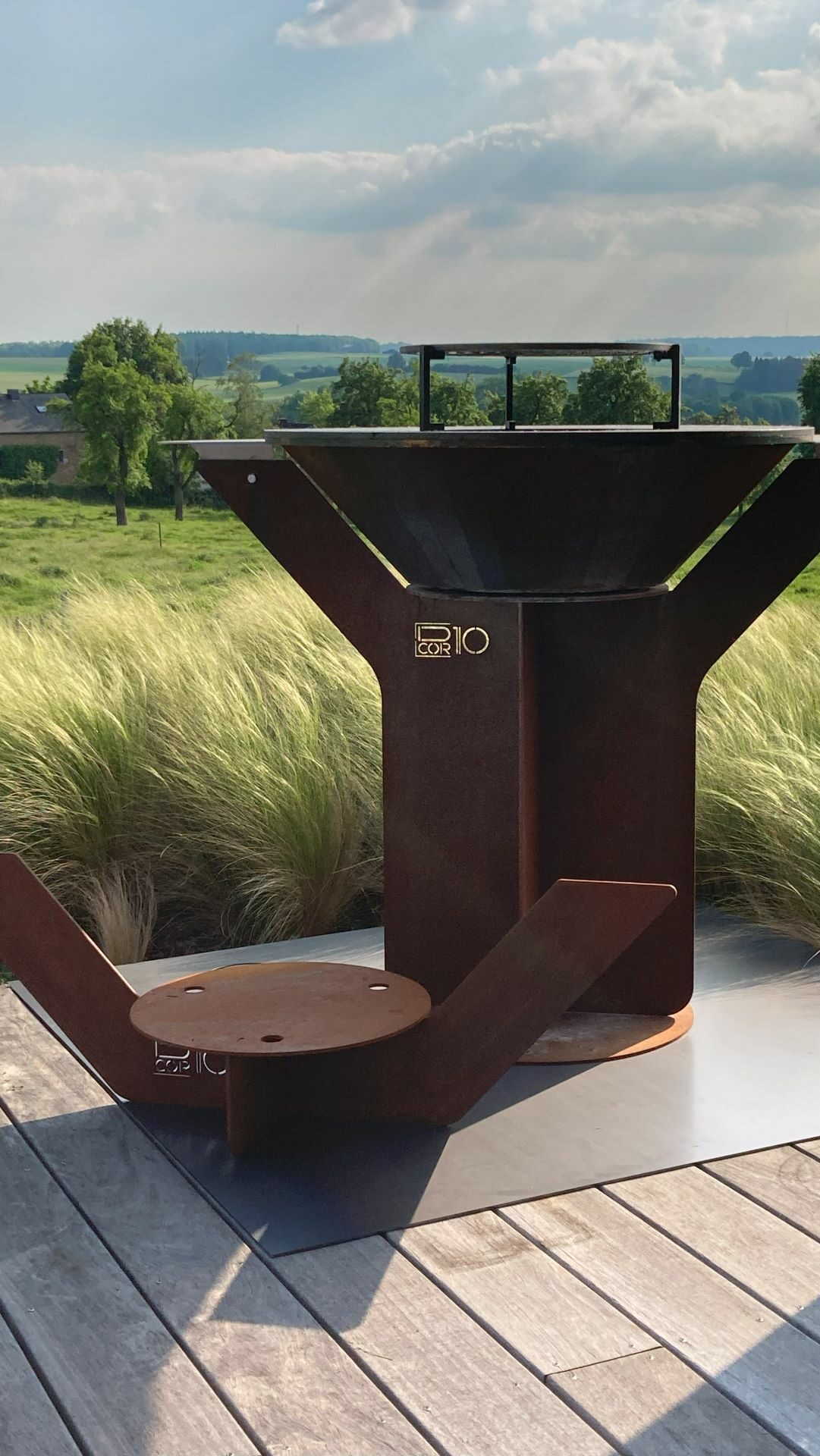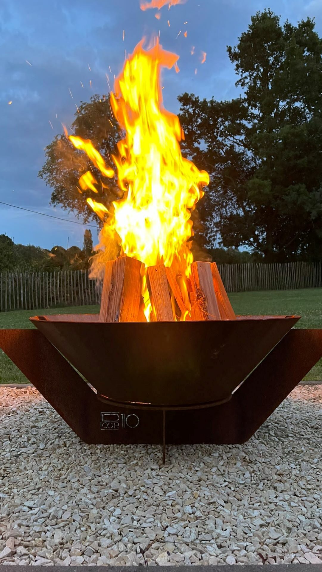 Au fil de la soirée, si l’envie vous prends de réchauffer quelques en-cas, déposez la taque de cuisson sur la vasque remplie de braises chaudes et régalez vous.